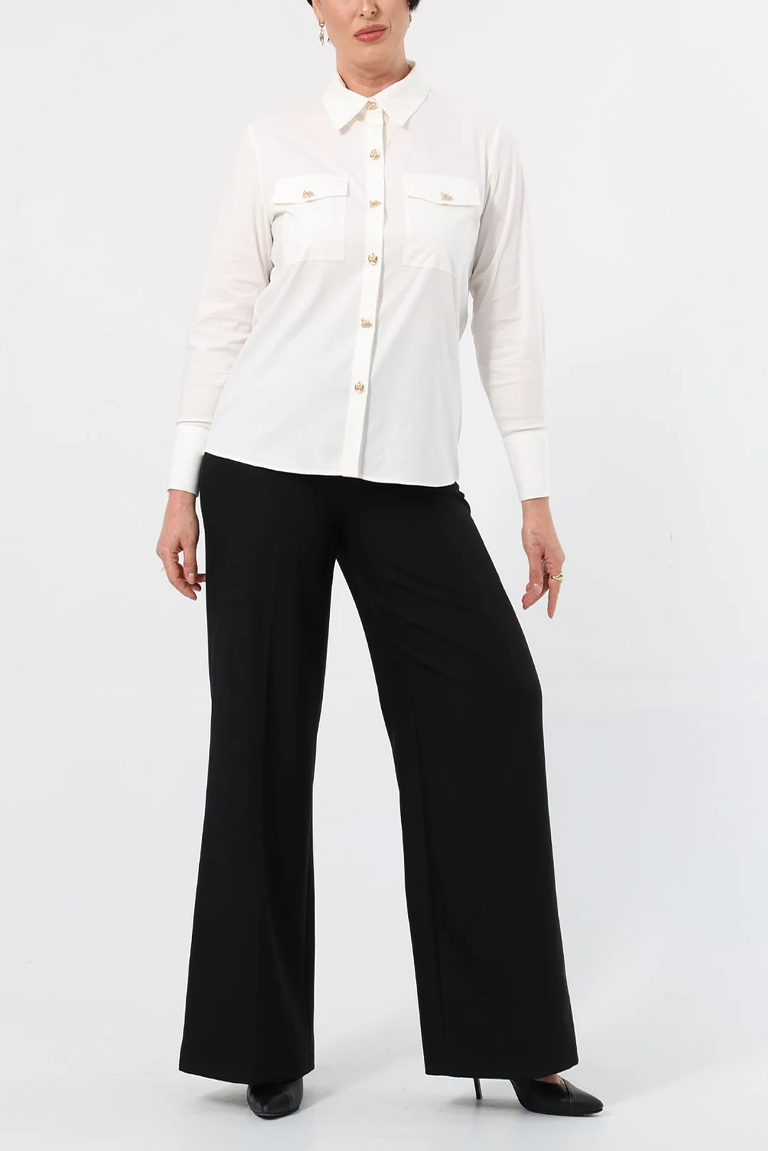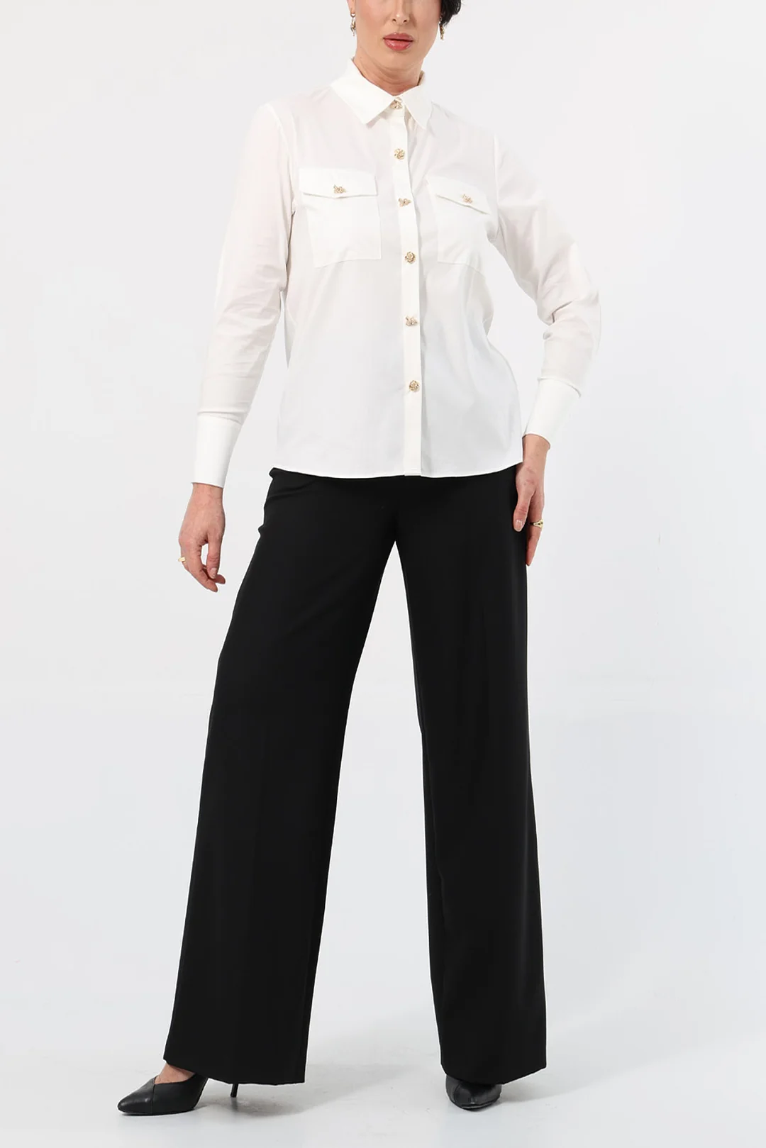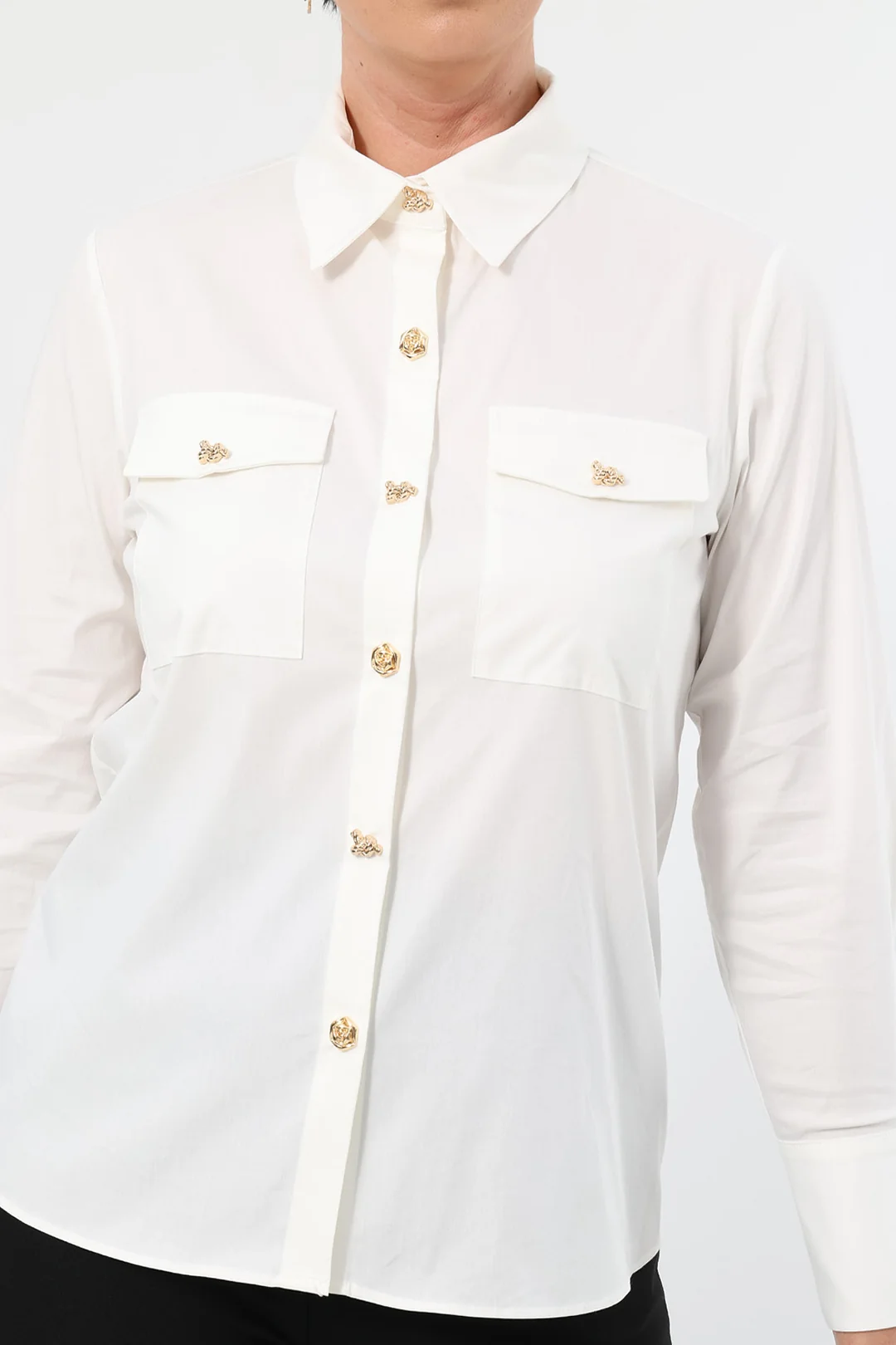 Gömlek: Uzun kollu, düğmeli, cep detaylı klasik kesim