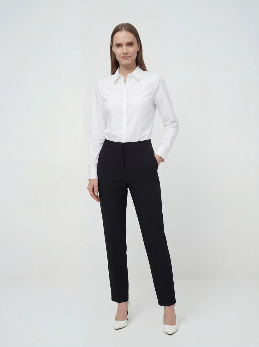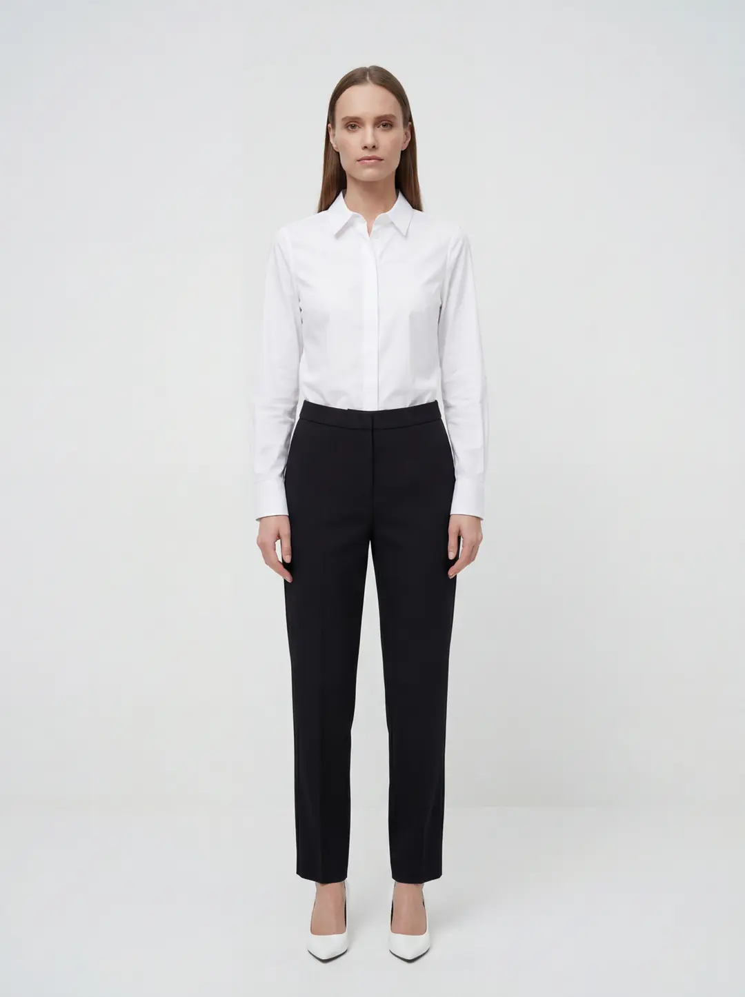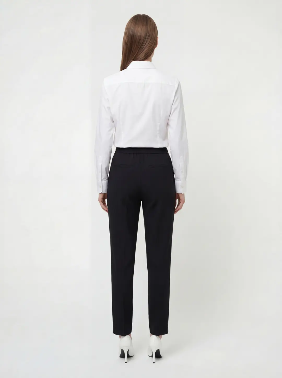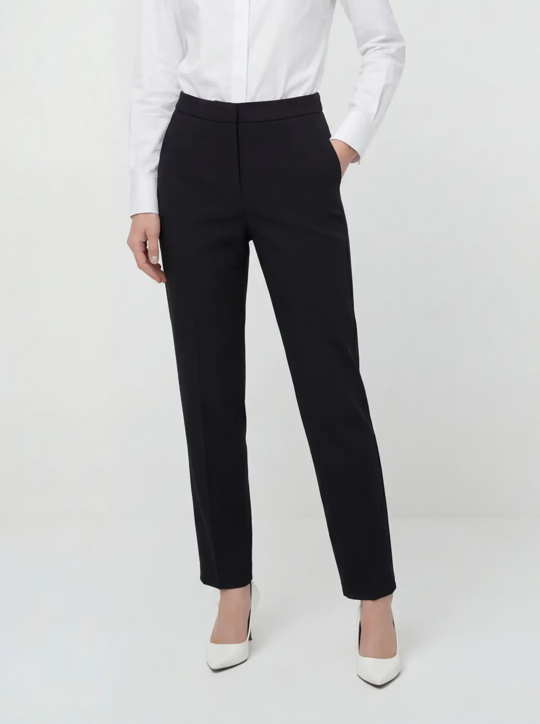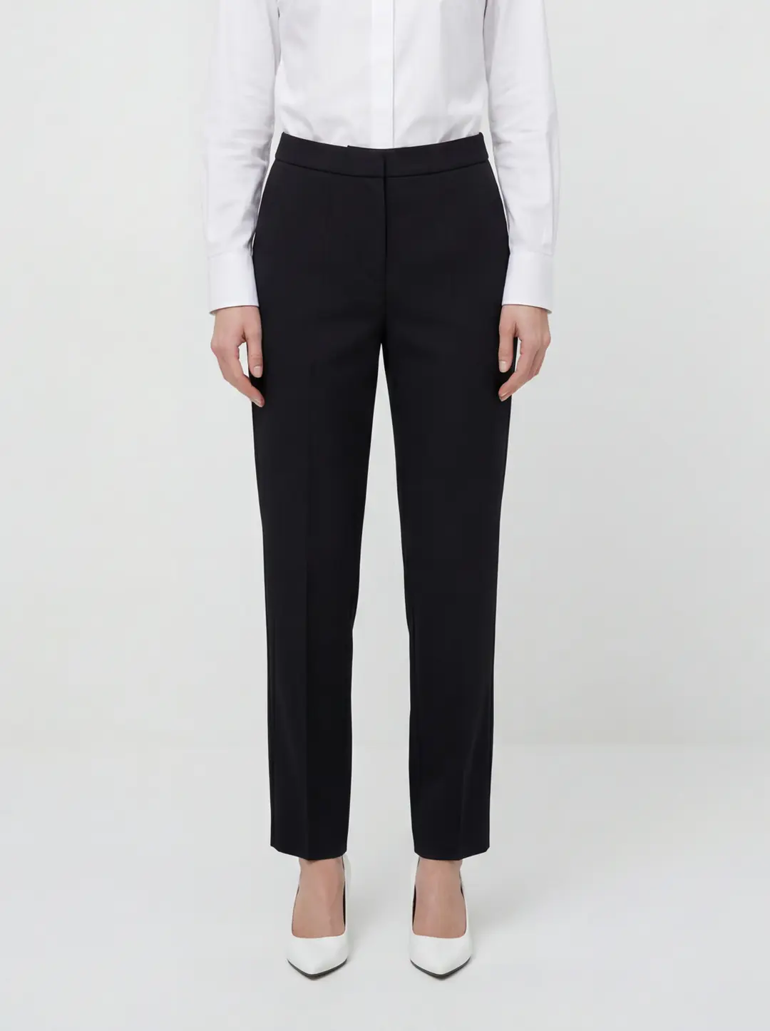 Yüksek bel formu vücut hatlarını dengeli bir şekilde sararak daha zarif ve uzun bir siluet görünümü sağlar. Ön kısımda yer alan temiz ve düz hatlar pantolonun modern görünümünü güçlendirirken, klasik kesimi sayesinde hem profesyonel hem de günlük kombinlere uyum sağlar. Bel kısmındaki sade tasarım, gömlek, bluz, triko veya ceket gibi farklı üst parçalarla kolayca kombinlenmesine imkan tanır.