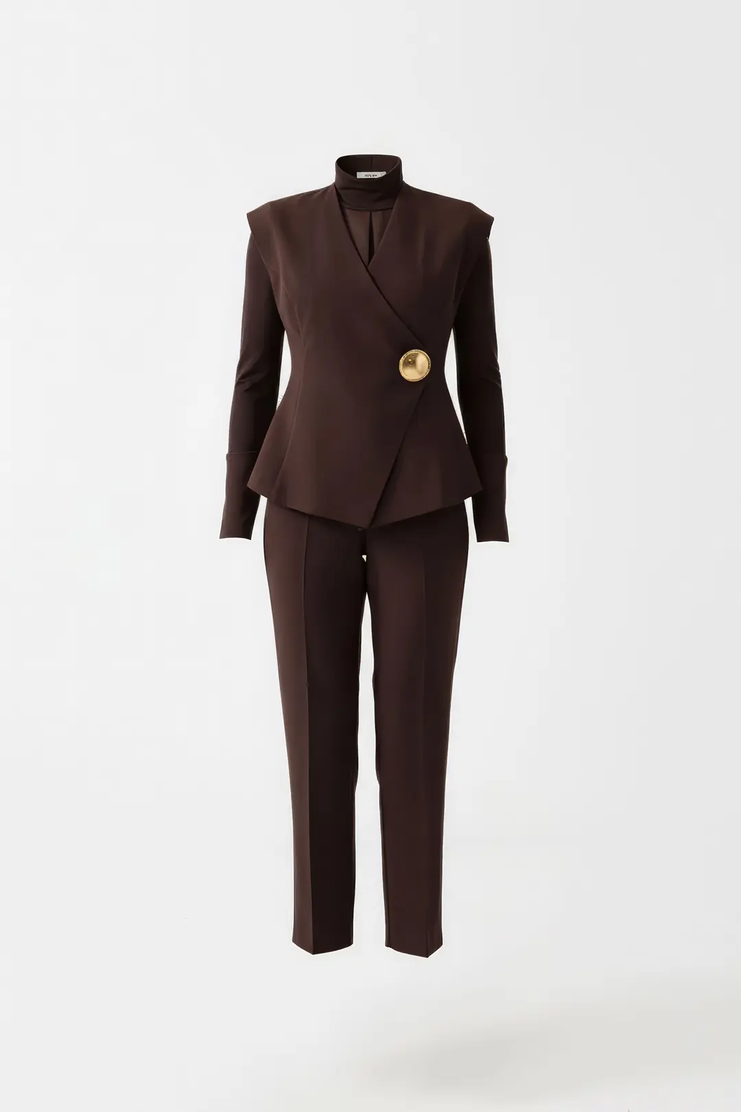 Zamansız şıklığı modern detaylarla buluşturan pantolon takım, büyük düğme detaylı yelek ve klasik kesim pantolondan oluşuyor. Hem ofis şıklığında hem de özel davetlerde sofistike bir tarz yakalamanızı sağlar.