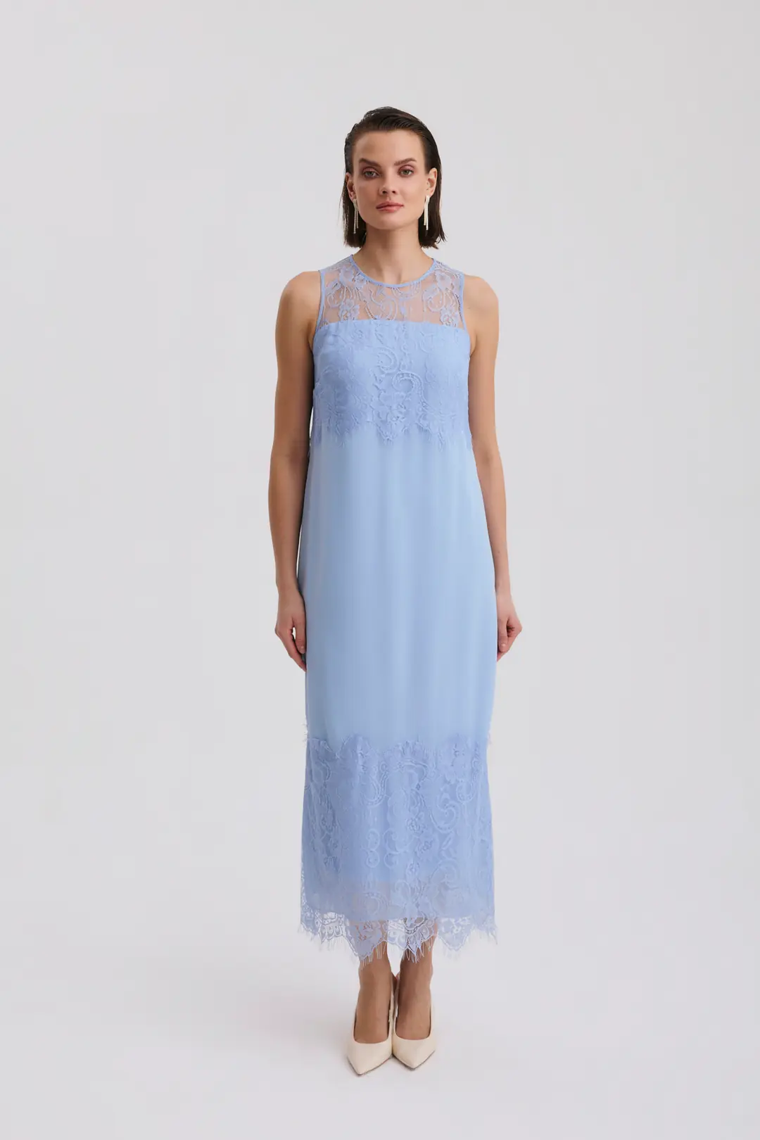 Dantel detaylı uzun elbise