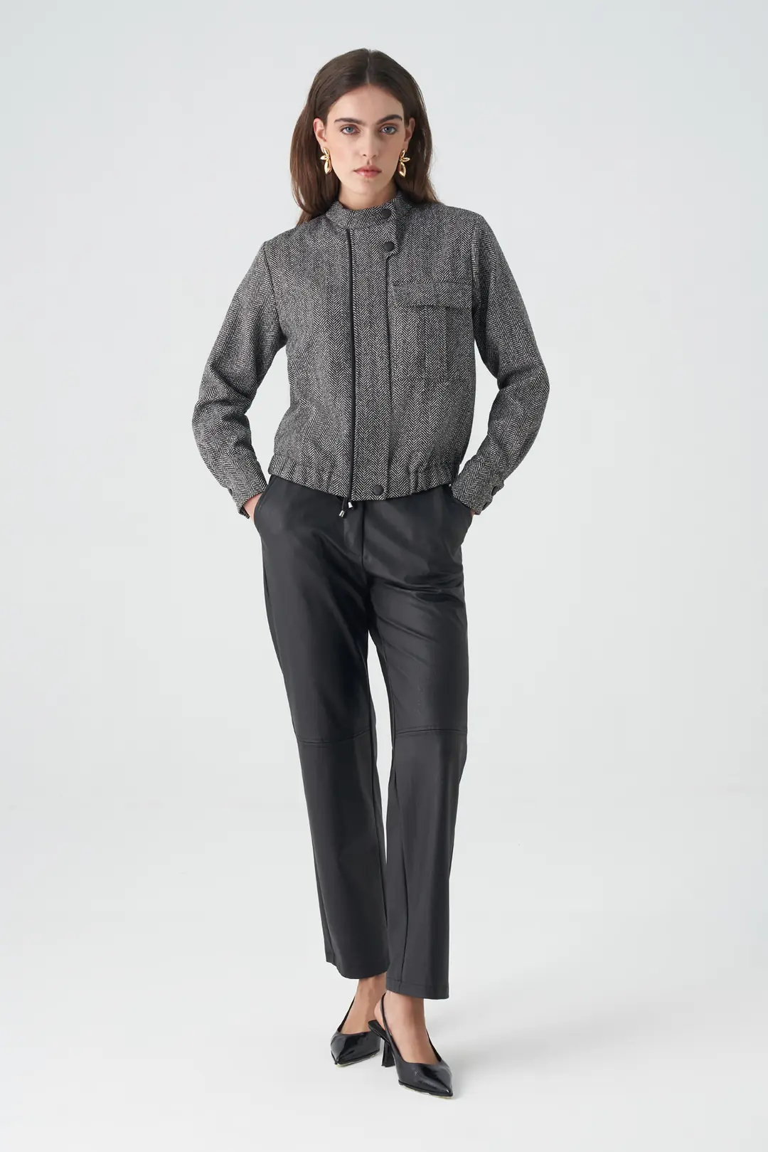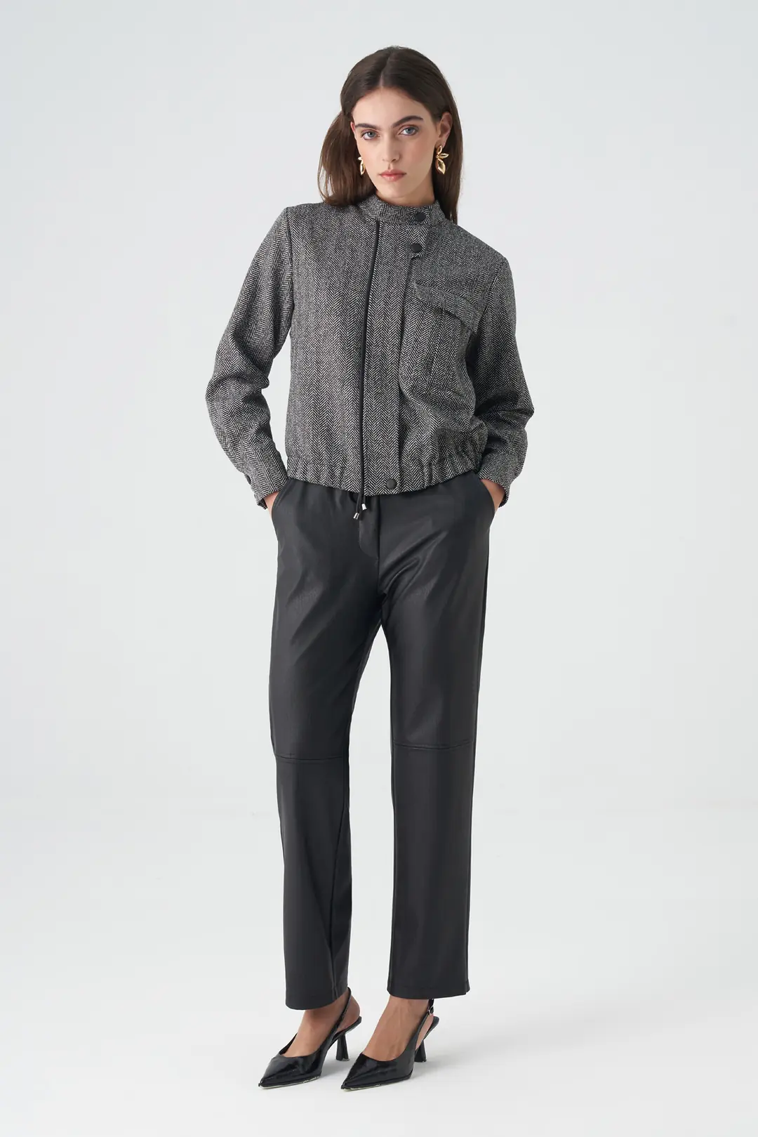Modern ve sofistike görünümüyle öne çıkan deri görünümlü pantolon, sezonun en trend parçalarından biridir. Yumuşak dokulu yüzeyi ve rahat kalıbı ile konforu zarafetle buluşturur. Düz paça formu ve bel kısmındaki bağlama detayı, hem gündüz hem de akşam kombinlerinde zamansız bir şıklık sunar. Gömlek, blazer ceket veya kazaklarla kolayca kombinlenebilen bu pantolon, minimal ama etkileyici bir stilin anahtar parçasıdır.