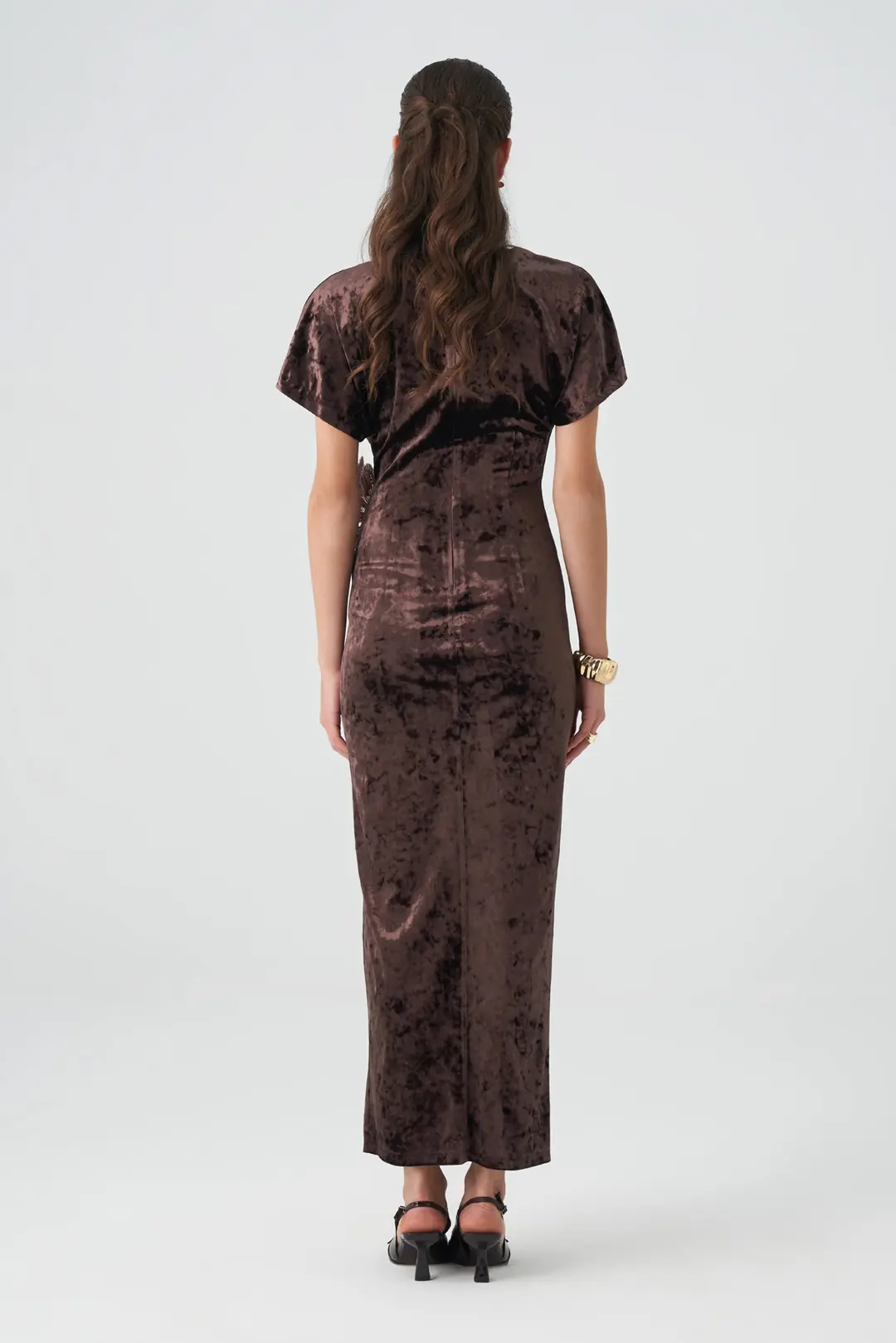 Kısa kollu formu, asimetrik drape detayı ve yan yırtmaç tasarımı sayesinde hem zarif hem de modern bir duruş sunar. Kokteyller, akşam yemekleri ve özel organizasyonlar için mükemmel bir seçimdir.