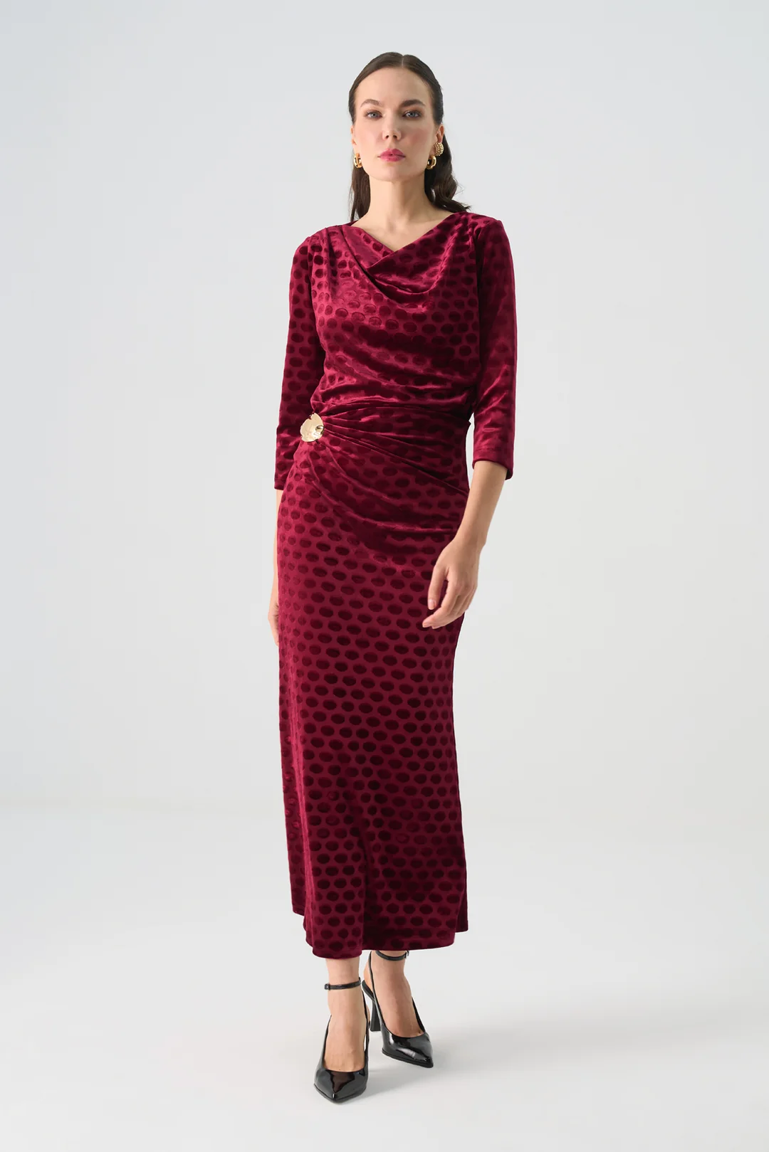 Zamansız şıklığı modern bir zarafetle buluşturan bu özel tasarım takım, dokulu kumaşı ve kusursuz kalıbıyla göz alıcı bir siluet sunar. Vücudu saran ama rahatsız etmeyen formu, dökümlü yakası ve belde yer alan zarif metal aksesuar detayıyla sofistike bir görünüm kazandırır. Günün her saatine uyum sağlayan bu model; davetlerde, özel günlerde ve akşam etkinliklerinde fark yaratmak isteyen kadınlar için ideal bir seçenektir.