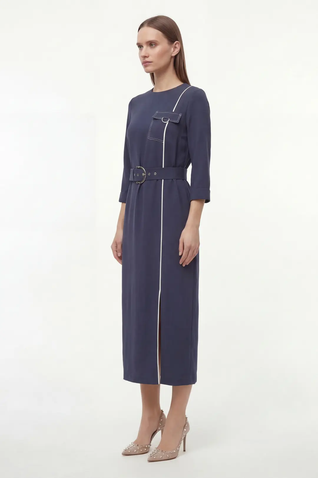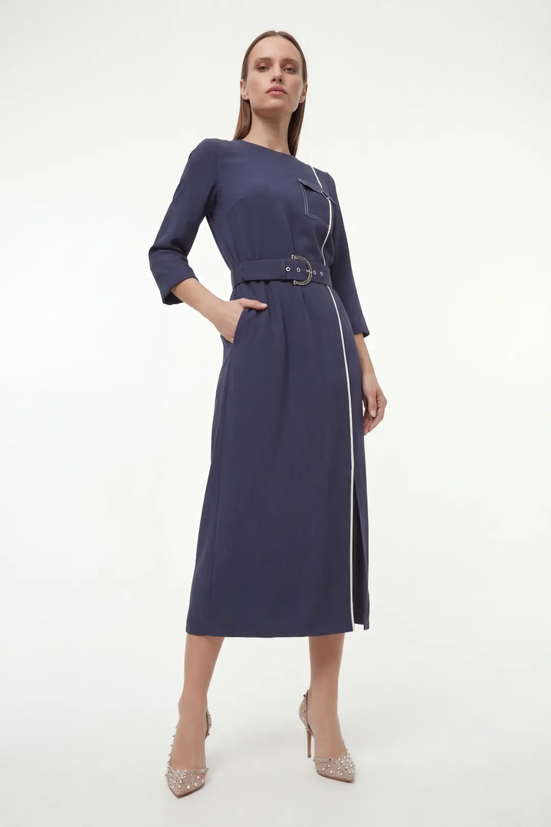 • Detay: Bel kemeri, sade tasarım, yan cepler