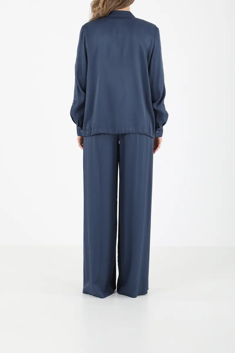 • Pantolon: Palazzo kesim, yüksek bel, geniş paça
