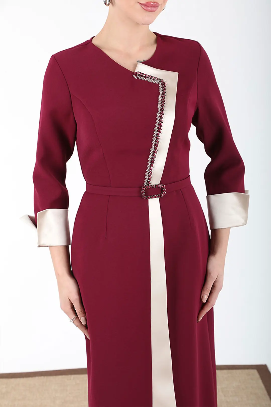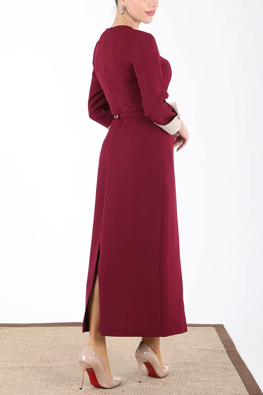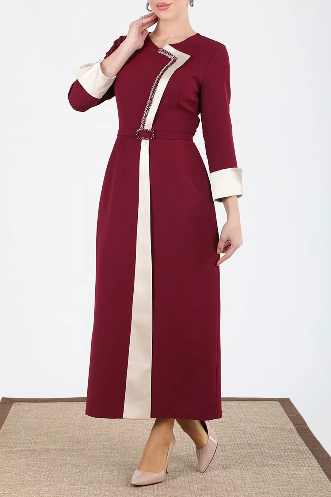 Minimal şıklığı güçlü detaylarla birleştiren vizon uzun elbise, siyah şerit tasarımı ve belden kemer detayıyla sofistike bir görünüm sunar. Günlük şıklık, ofis stili ve özel davetlerde rahatlıkla tercih edebileceğiniz modern bir parçadır.