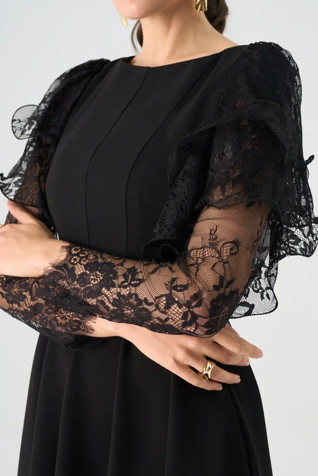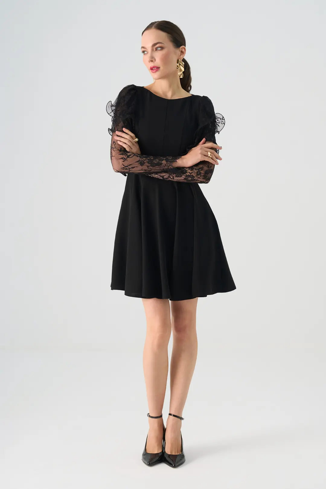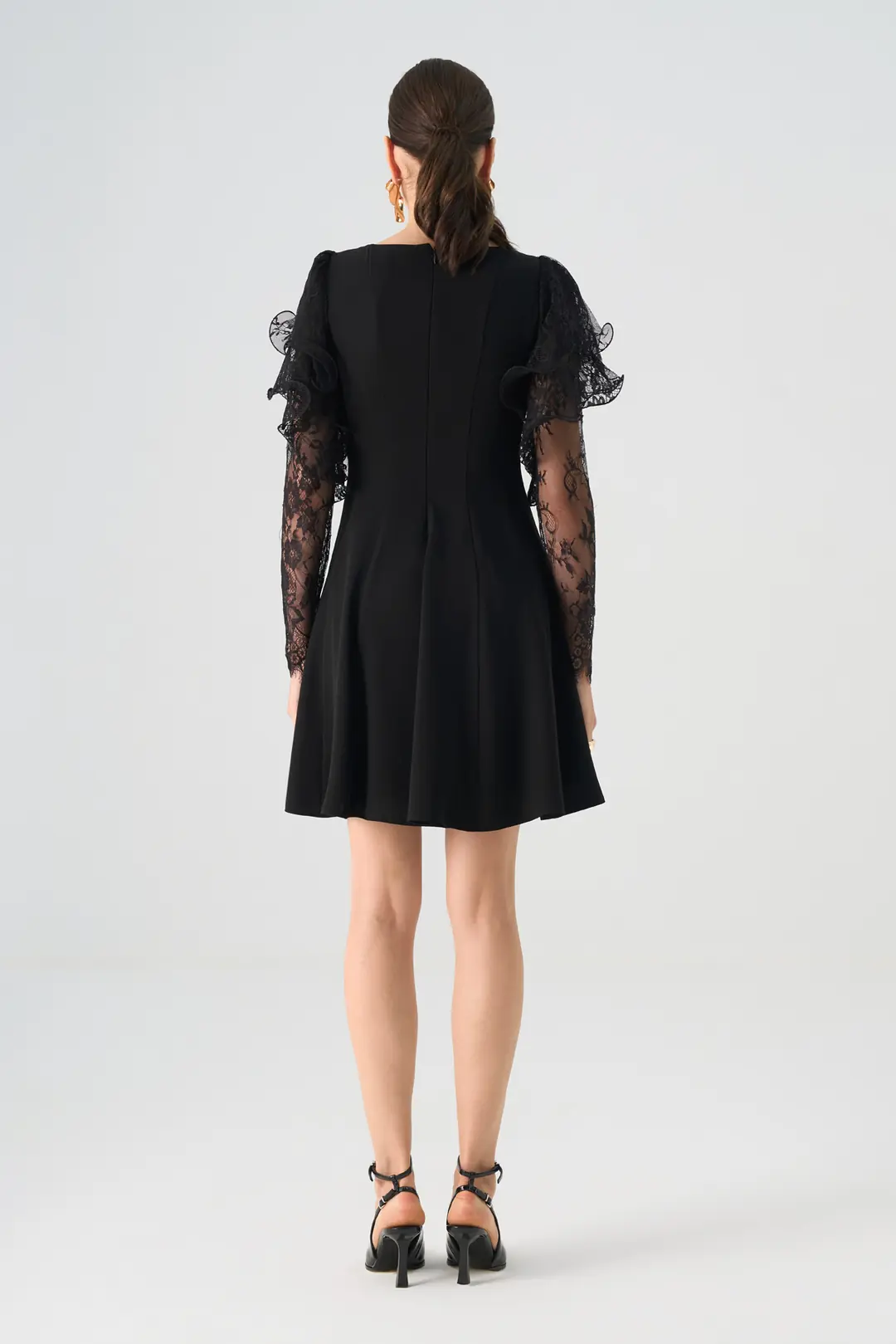 Kolu dantelli volan detaylı mini boy elbise EL-4462