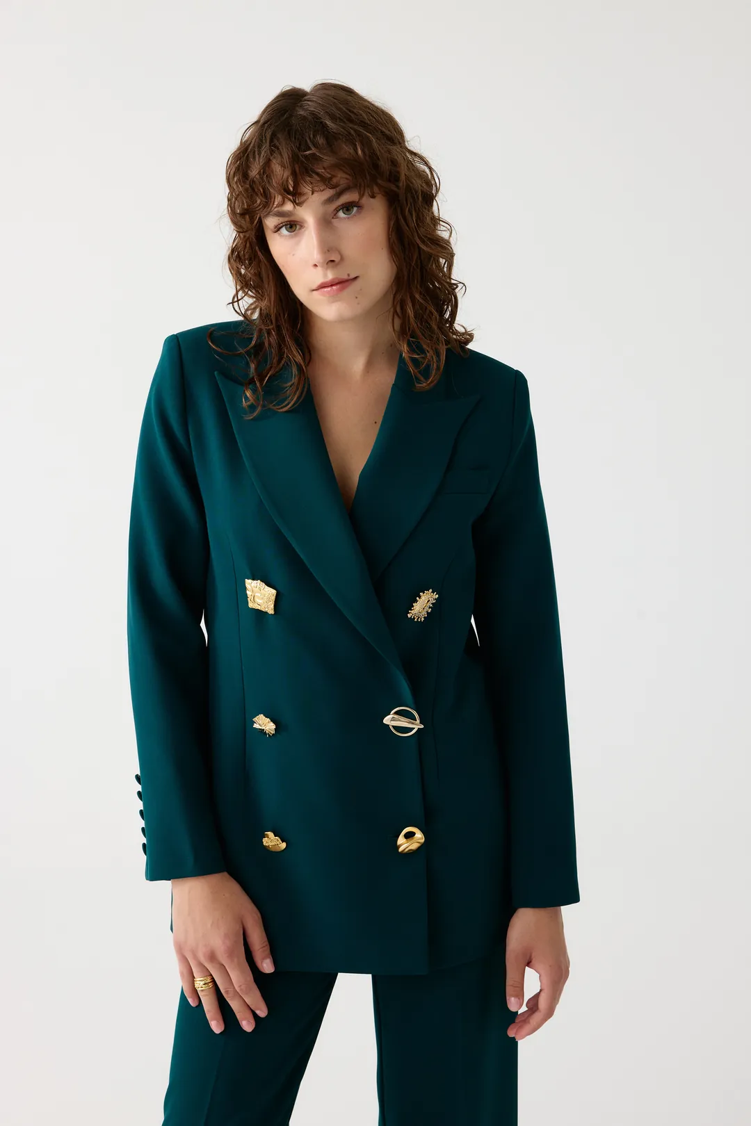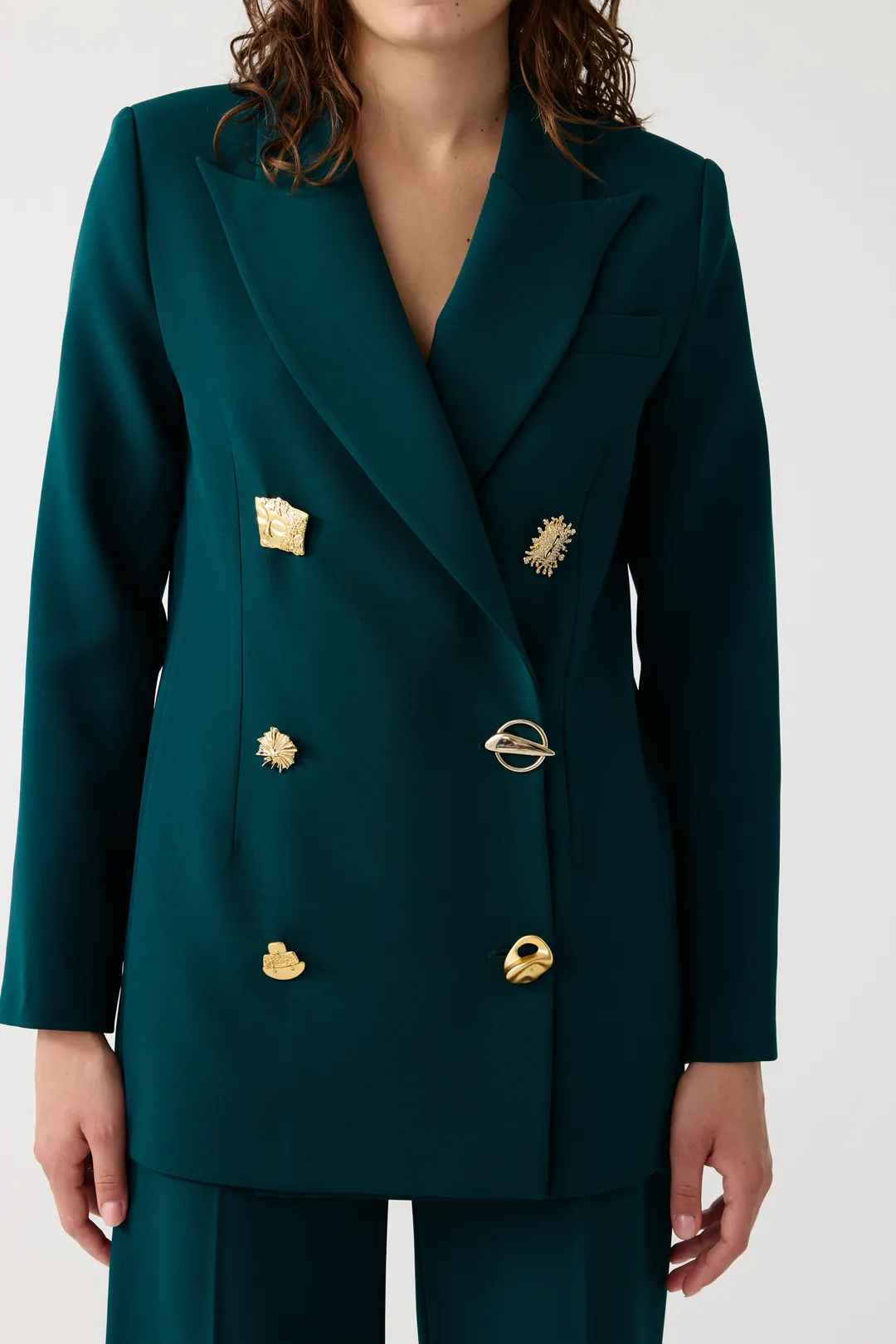 • Ön Tasarım: Çift sıra gold dekoratif düğme detayı