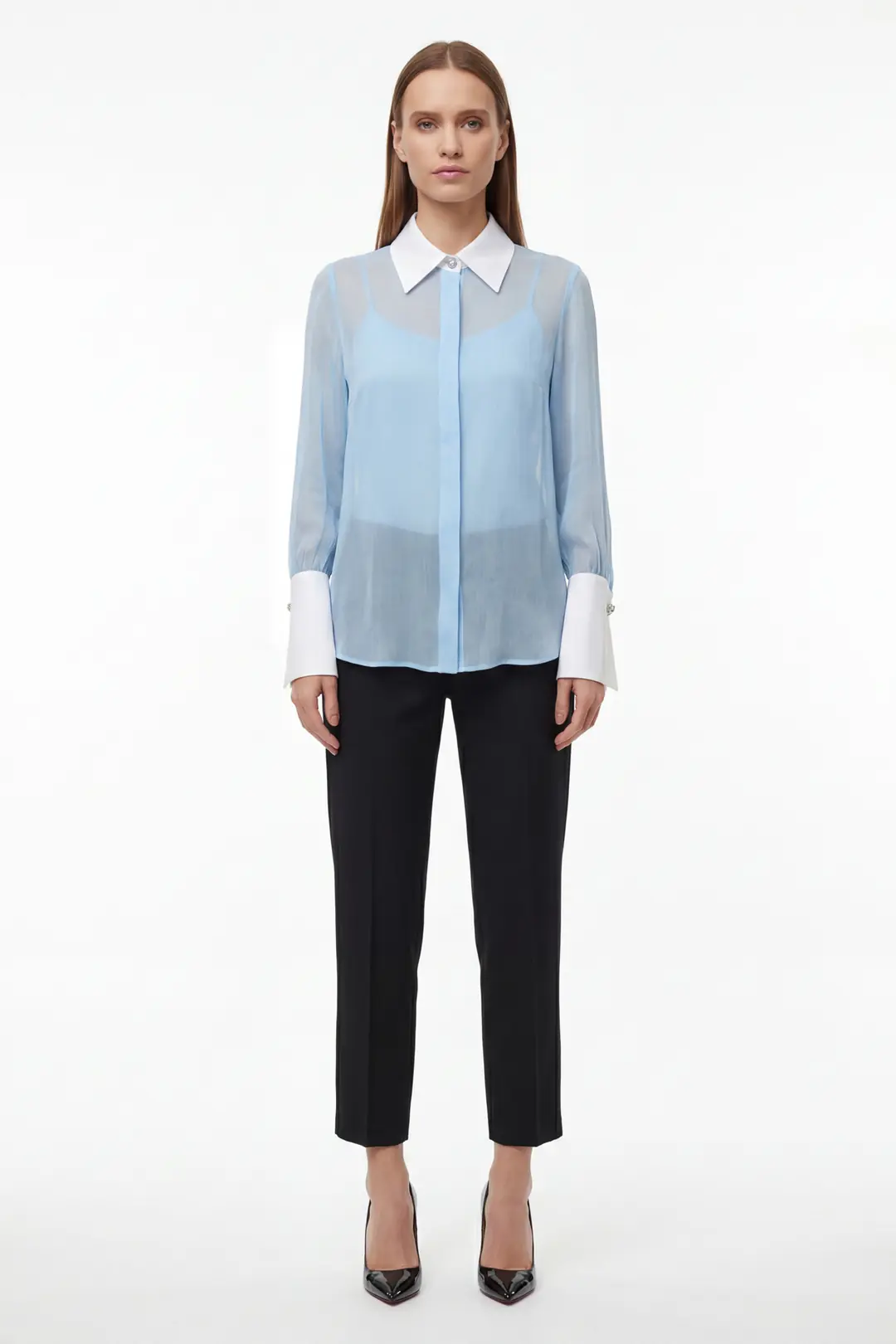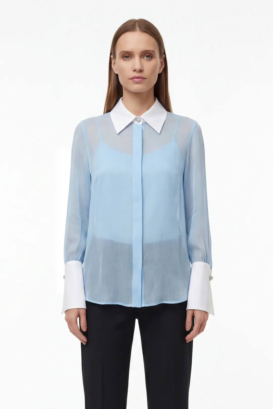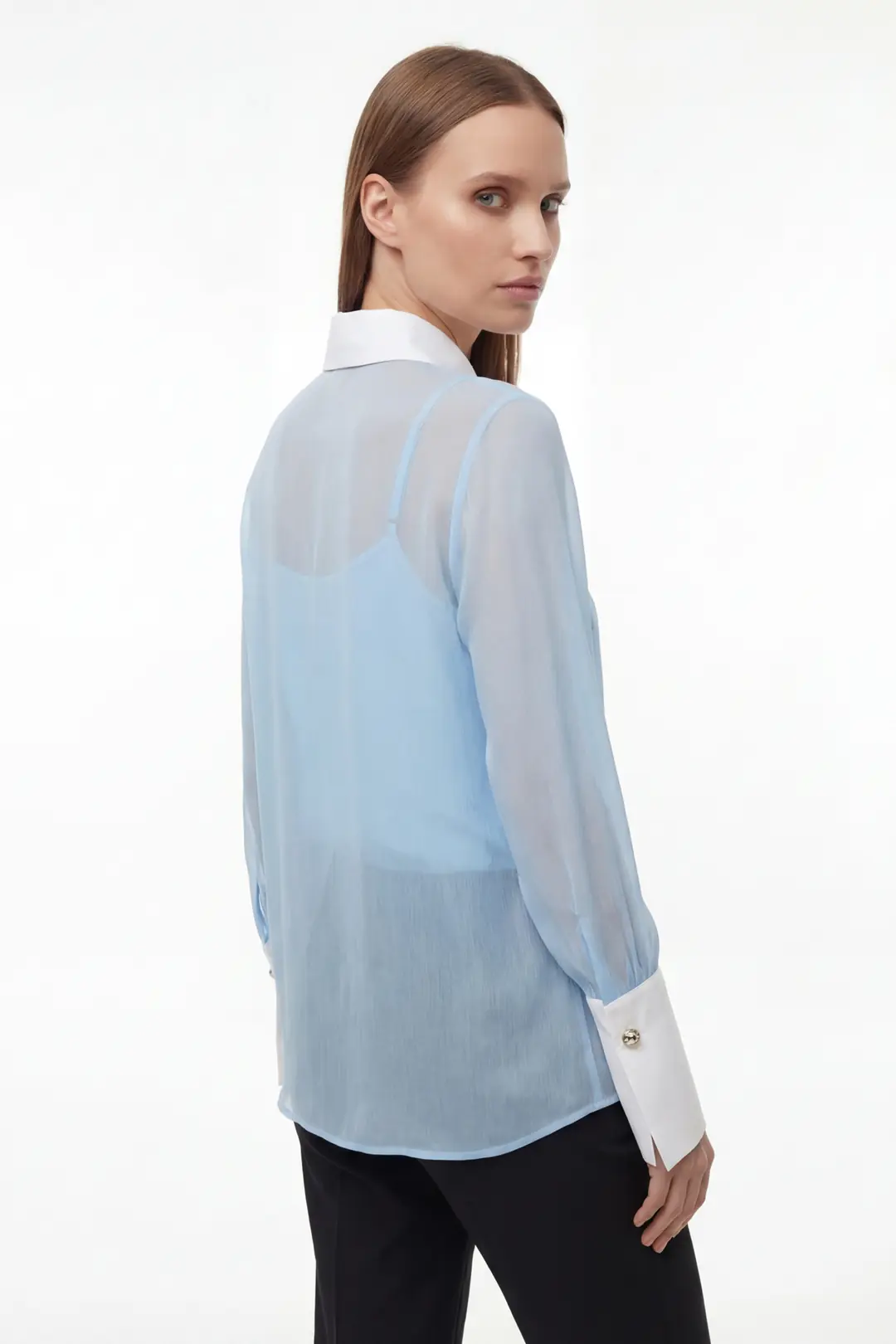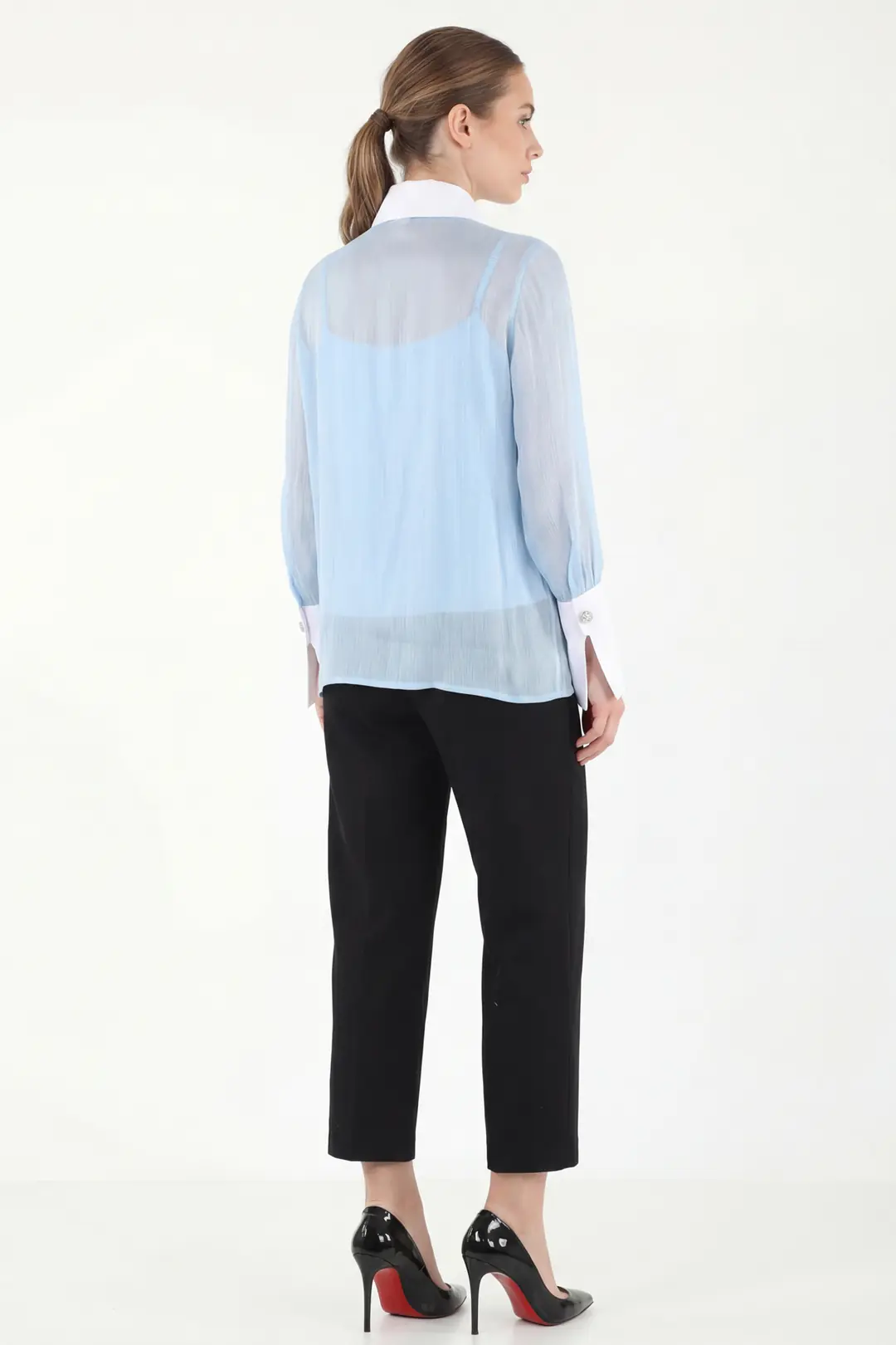 Gömlek: Uzun kollu, manşet kısmı beyaz kontrast detaylı, düğmeli