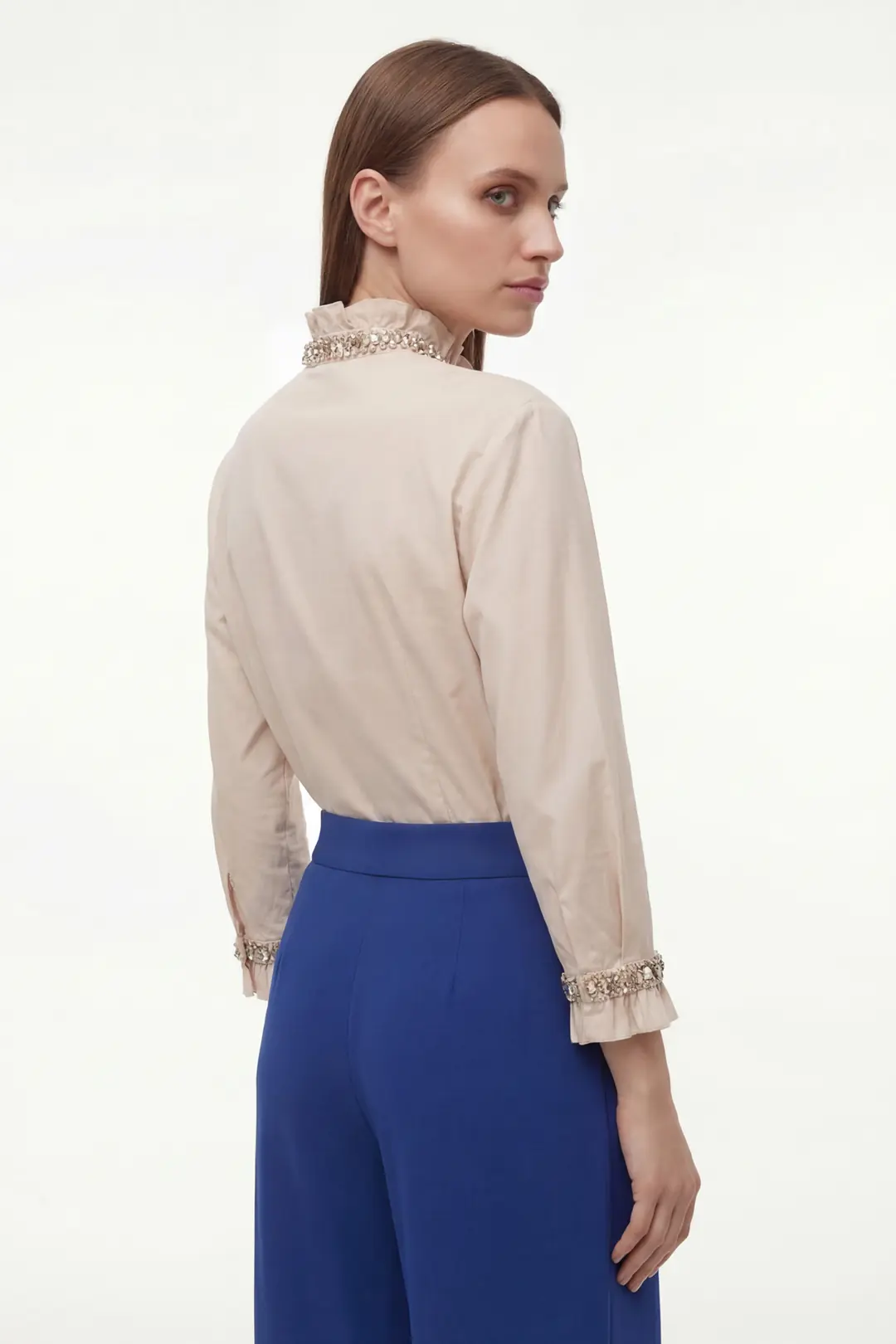 • Gömlek Detayı: Fırfır ve manşet işlemeli, uzun kollu