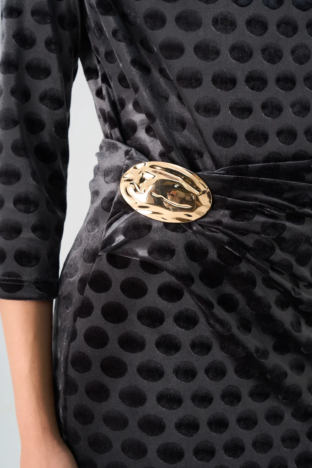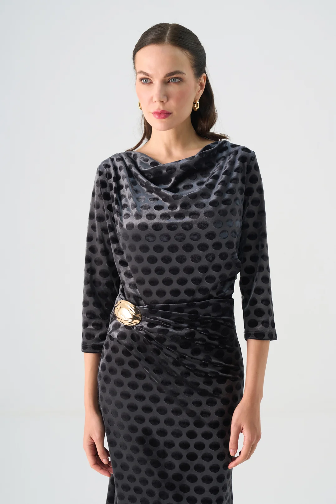 Degaje Yakalı Beli Aksesuarlı Kadife İkili Takım EL-2772