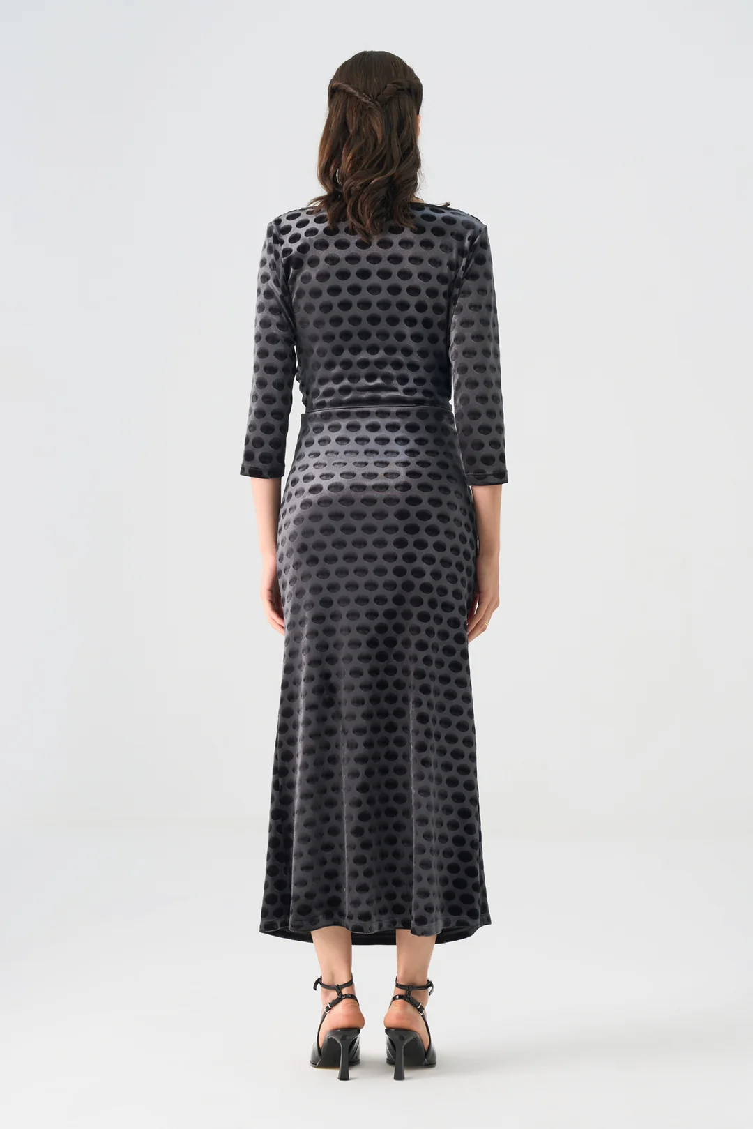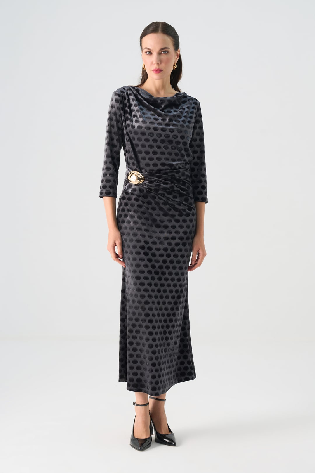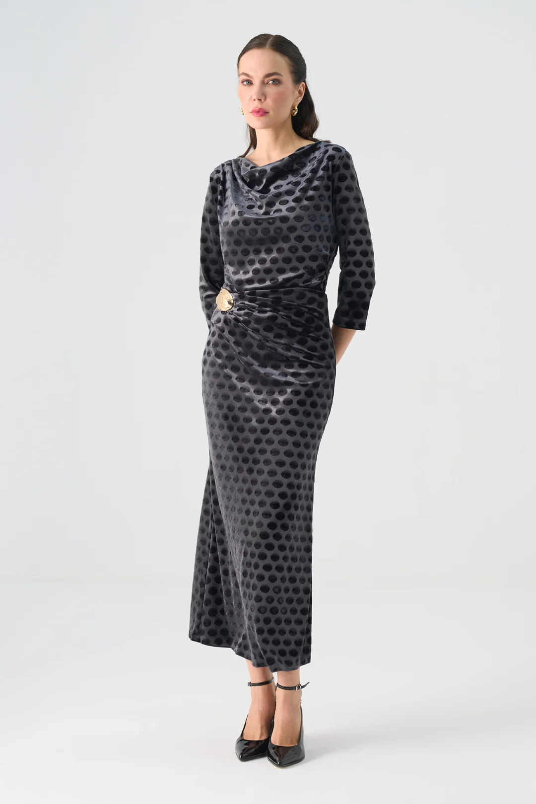 Kumaşın ışıltılı yüzeyi, her hareketinizde farklı bir derinlik yansıtırken, yumuşak dokusu sayesinde konforu estetikle birleştirir. Topuklu ayakkabılar ve zarif takılarla tamamlandığında, etkileyici bir görünüm elde edilir.