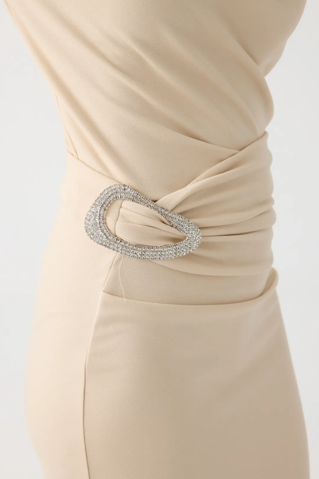 Detay: Bel kısmında metal tokalı şık aksesuar